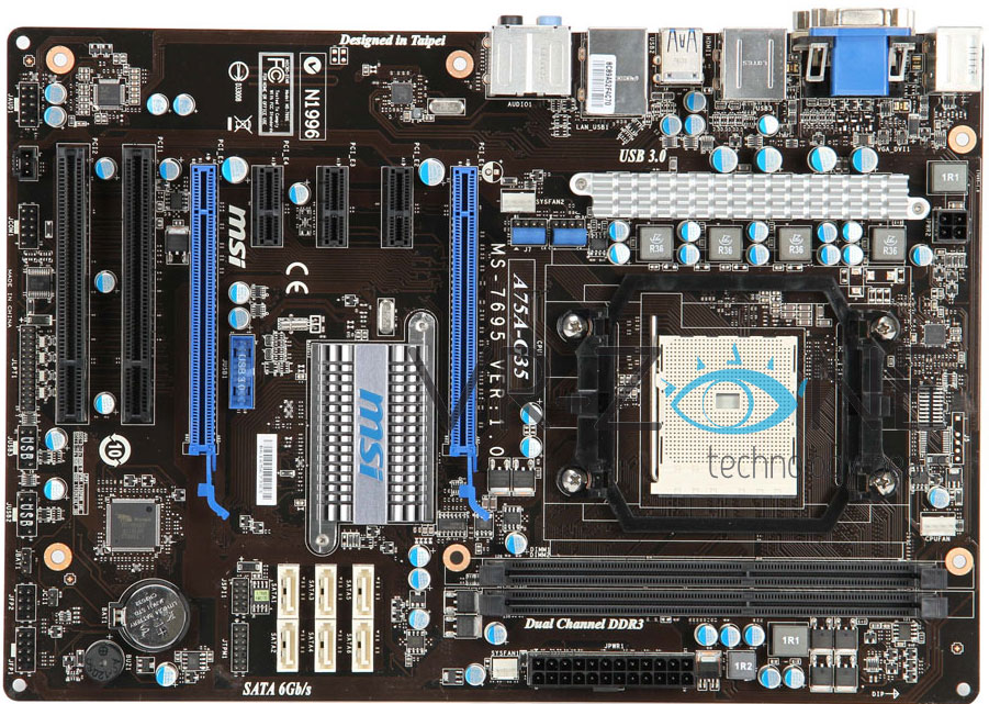 La scheda madre, con socket FM1 e chipset A75, è in grado di ospitare le CPU APU Llano di casa AMD. Con formato ATX, la A75A-G35, dispone di 4 fasi VRM per l'alimentazione CPU, due slot DDR3 per RAM con frequenza fino a 1866 MHz e sette slot PCI.