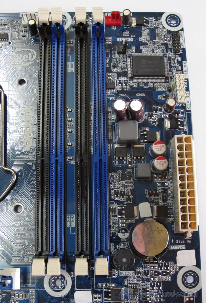 Nella zona socket non troviamo alcun sistema di dissipazione inerente i mosfets, l’alimentazione alla CPU viene garantita da un connettore da 4 pin, quindi poco più a destra osserviamo i 4 slot dedicati alle memorie RAM, ricordando che questa scheda madre supporta fino a 32GB di RAM DDR3 di frequenza 1333/1066mhz.