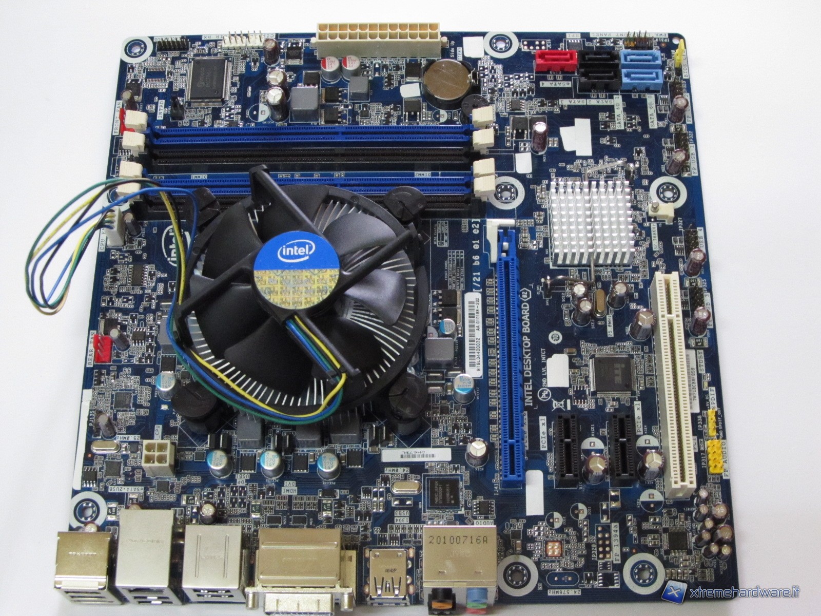 La scheda madre fornita da Intel per questa recensione è la DH67BL, di formato micro-ATX, dotata di Chipset Intel H67. Il chipset H67 è progettato specificatamente per poter sfruttare al meglio le potenzialità del comparto video integrato nelle CPU Sandy Bridge al sfruttando il bus FDI presente nel chipset stesso. Grazie ai due output video integrati nella DH67BL (DVI-I e HDMI) è possibile disporre di risoluzioni video fino a 2560x1600px o di riprodurre contenuti multimediali in modalità Full HD 1080p. Sottolineiamo che la scheda madre in oggetto ci è giunta per esser testata con il dissipatore Intel ‘stock’ che è compreso assieme al processore in qualsiasi confezione ‘retail’.